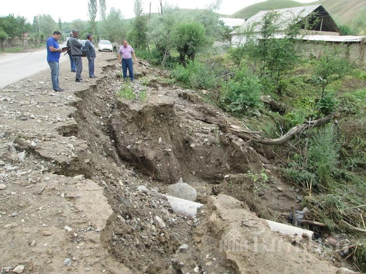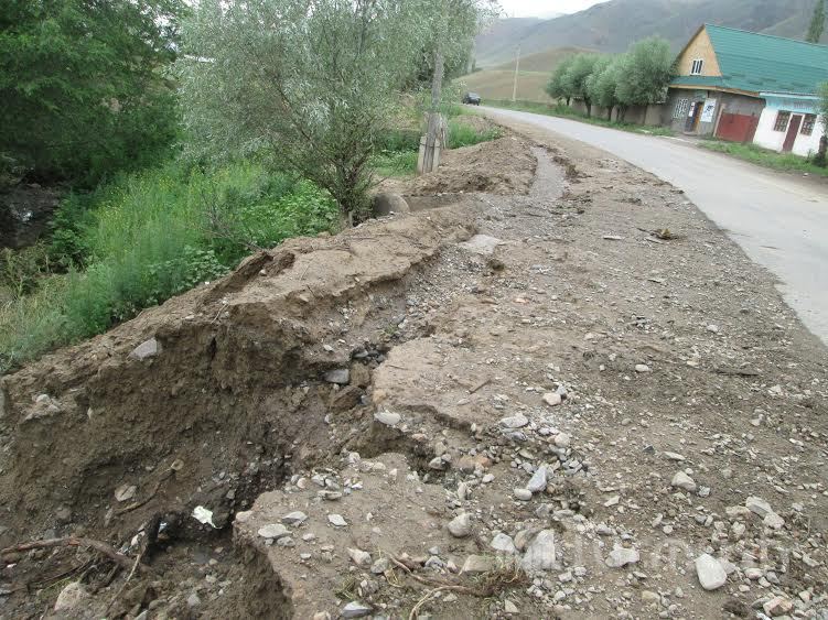 Токтогулдун Үч-Терек айыл аймагындагы жолдор менен үйлөрдү каптаган селдин кесепеттери (фото)
