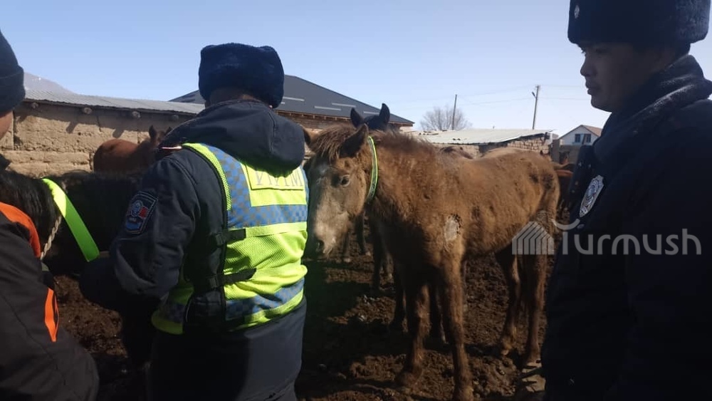 Жумгалдагы мал-жандыктарга караңгыда жарык чагылдыруучу тасмалар байланып жатат