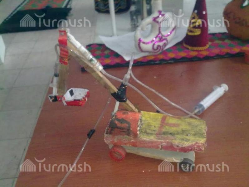 Фото — Девятиклассник из Токтогула Сагыныч сконструировал экскаватор, работающий на шприцах